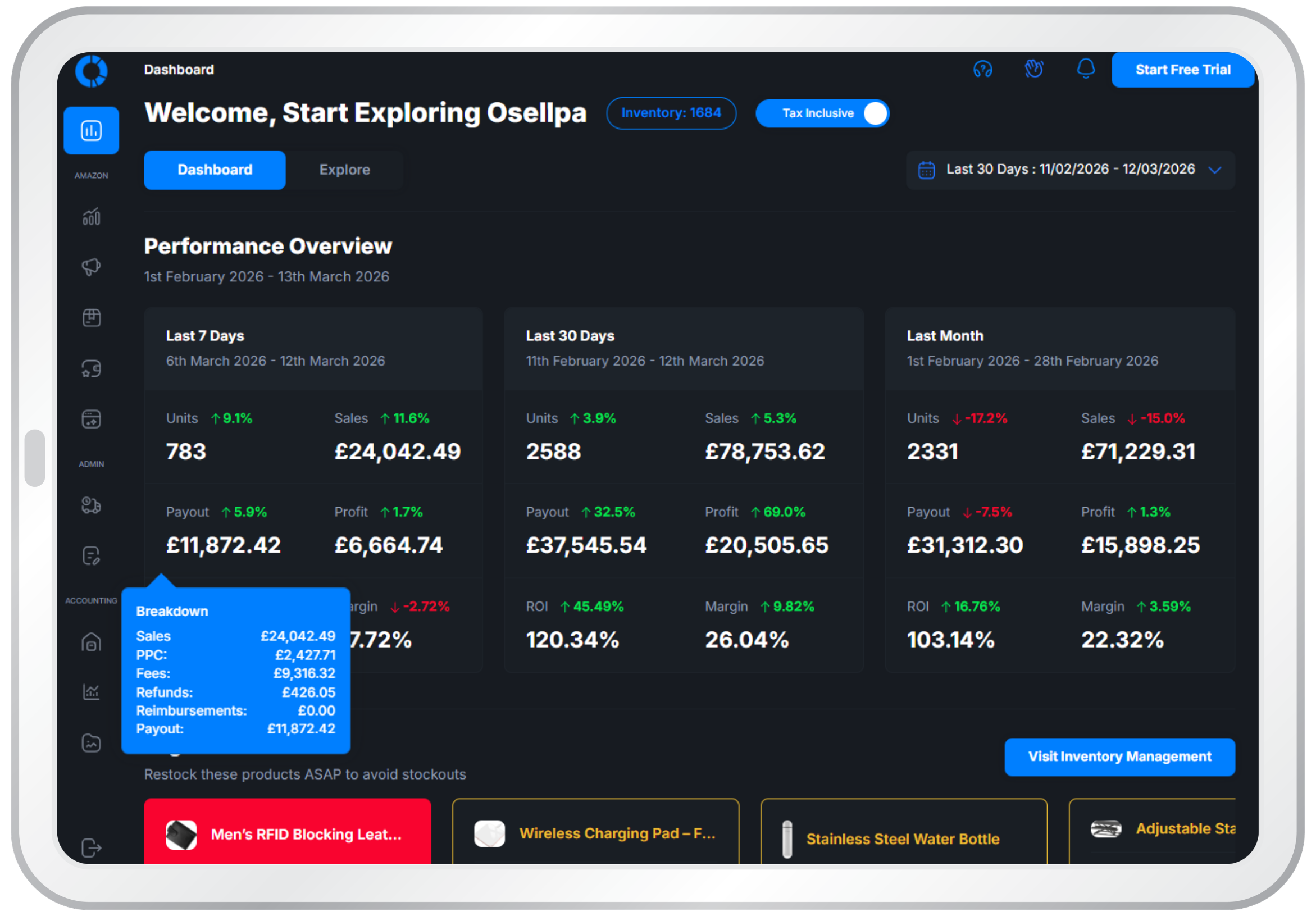 Optimise Your Amazon Business.Accurate profit analytics, PPC optimisation, and performance tools designed for serious Amazon sellers.